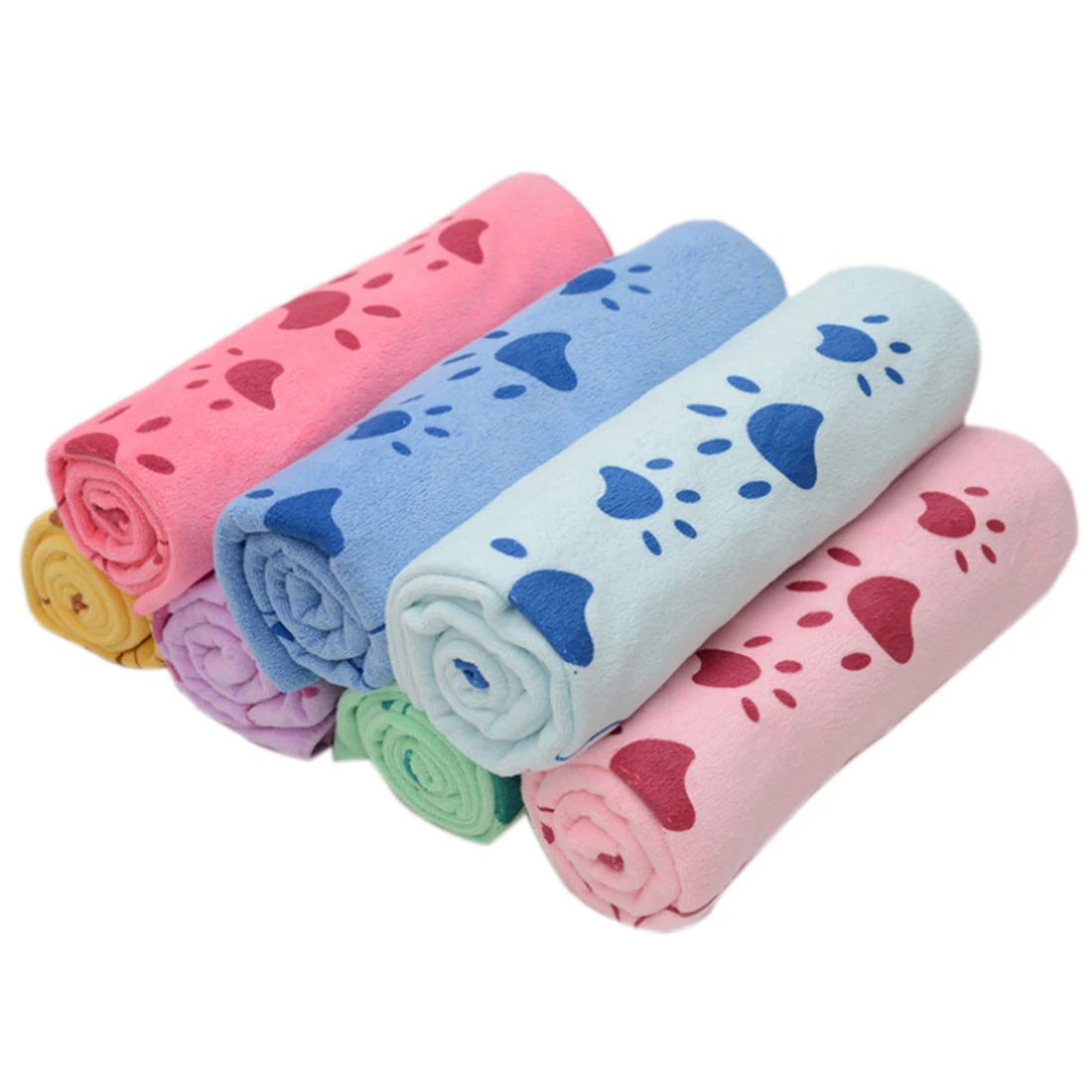 Cute Cozy Warm Paw Print Pet Dog Cat Absorbent Towel Blanket Mats 70*140 - Color RandomFeatures: