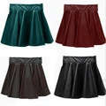 2015 Sexy High Waist Skirts Women Skirt Casual Elastic Waist Mini Black PU Pleated Leather Skirts Female saias femininasUSD 9.75-9.98/piece