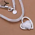Christmas Gift Silver Plated Necklace & Pendant,Fashion Jewelry Accessories,Inlaid Stone Heart Pendant Silver NecklaceUSD 3.55/piece