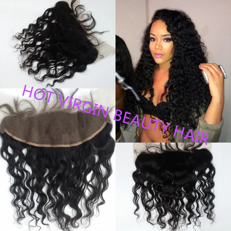 US $ 150.00-302.00/piece Free shipping 8A Virgin Indian Lace Frontal 13"x4" Bleached Knots Virgin Frontal Piece Water Wave Full Lace Frontal Indian Wavy