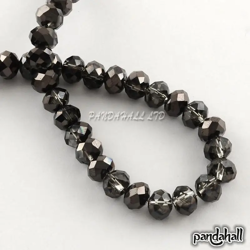 10 strands(100pcs/strand ) Mixed Color Fashion Diy Glass Beads 6mm Imitation Jade Style Faceted Abacus bracelet bead necklaceUSD 31.95/lot Electroplate Transparent Faceted Abacus Glass Bead Strands, Black Plated Size: about 2.5mm in diameter, 2mm thick, hole: 0.8mm; about 200pcs/strand.