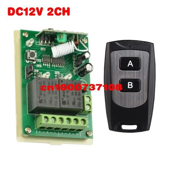 the more you order the more discount 12V 2 CH 10A RF wireless remote control system It is a learning code wireless remote control switch (receiver),the output way /working way can be change as you like ,it is easy to match the transmitter . The AK-RK02S-12 2 channel wireless remote control switch with 4 Relays. It can make the equipment turn or reverse .on/off and so on come true. The volume is small and the performance is stable and reliable ,high receive sensitivity , Application range: Auto door, window, lifting equipment, entrance access, up and down controller, alarm system industrial control and security etc. The switch can compatible 2262 /2260/1527/2240 etc chip and several code wireless remote control. So it can meet someone need of choosing the wireless remote control as they like to work with it . Output working way: 1. Self-lock ---connect the JP1 with the cutting out cap. 2. Jog---the cutting-out cap is non-occupation , JP1 and JP2 do not connect either. 3.inter-lock---- Connect the Jp2 with the Cutting out cap, Jog---- press one button is ON . loosen your finger on the same button is OFF .need one channel switch and one buttons remote control ) Self -lock----- press one button for one time is ON .press the same button again is OFF .need one channel switch and one buttons remote control Inter-lock-------press one button is ON , press another button is OFF . (need one channel switch and 2 buttons remote control Please notice that .here is the 2CH receiver and 2 buttons transmitter, you just can choose the the output way is self-lock or jog OR inter-lock Please tell me the working way that you want after you have bought it ,thank you Learning and remove method 1. press the learning code .the indicator flash ,loosen your finger ,press any button of the remote control ,the indicator flash 2 times and off .it mean you learn it successfully . 2. it can learn more than 12 PCS 2262 or 1527 chip with the different code wireless remote control 3. remove/clean :press the learning button about 8 seconds , the indicator turn on to off , it means the information that you keep have been removed successfully . Technique Data