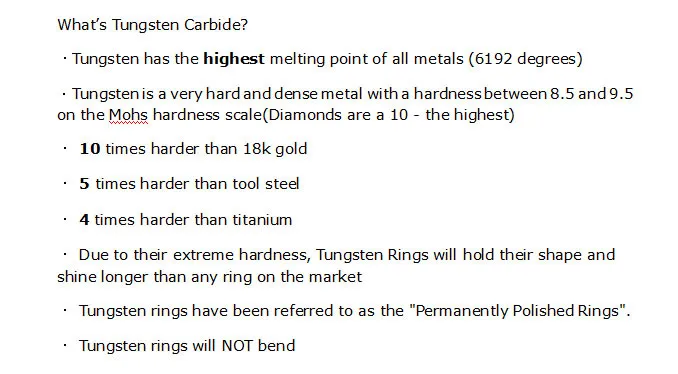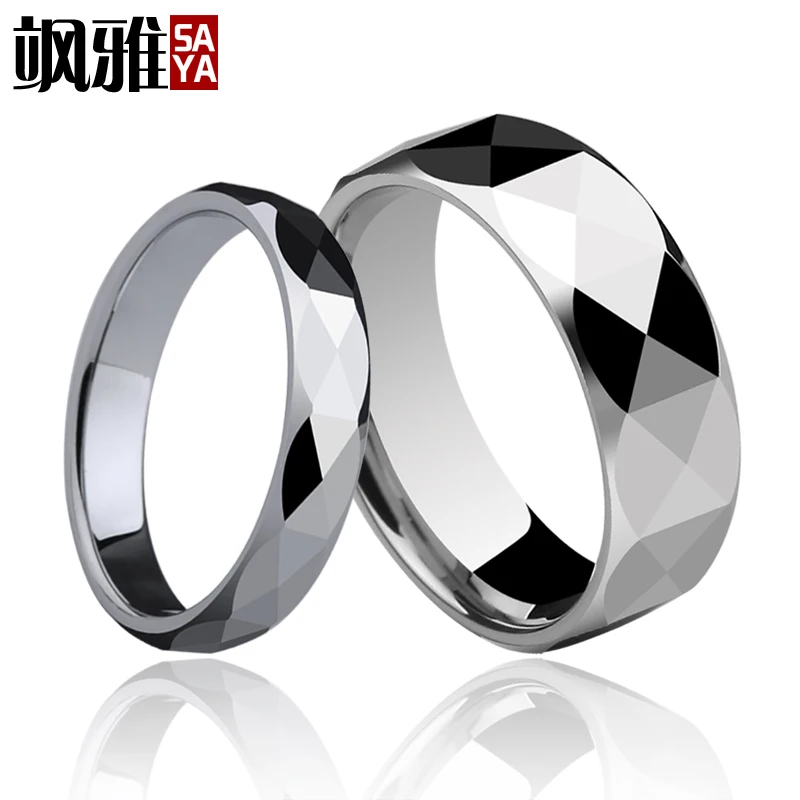 Brand: SayaMaterial: 85.7% Tungsten ,Never Fade, Scratch Proof, Cobalt FreeHigh Polished,Confort Fit, Mutiface Diamond CutWidth:4mm for Woman, 7mm for ManSize:4-11 and half size, also can customized.Package: one piece of ring with free gift box and polishing clothFree engraving, please leave a message for the engrave content