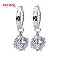 The new Ms. fashion sterling silver jewelry inlaid crystal cube sugar cube square Button Ear earrings beautiful long section 8MMUSD 5.50/pair