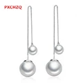 Ms. new fashion silver jewelry freshwater pearls ear pendant long section makings tassel ear pendant double ball 8 10MMUSD 3.60/pair