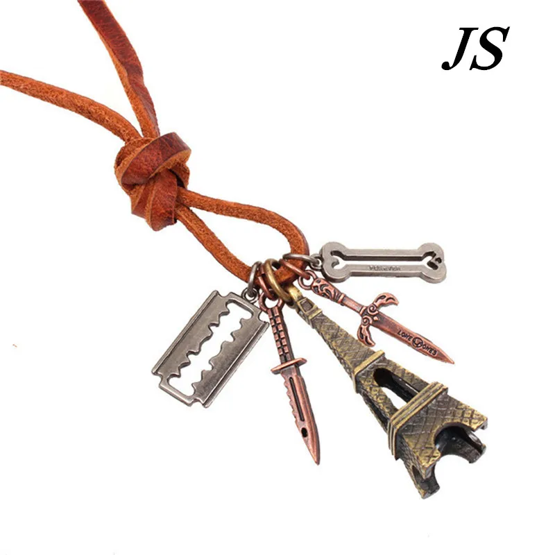 JS100% Genuine Leather Jewelry Charm Antique Brass Paris Torre Eiffel Tower Necklace Male Collar Men Choker LN010 All product is in stock,we can send your order within 24 hours. All product is produced by ourself,we supply you low price. Attentions: When order > $5,we provide shipping by china post. (with tracking information;delivery time 20-45 days) When order < $5,we provide shipping by China Post Ordinary Small Packet Plus. (without tracking infomation;delivery time 25-60 days) Please don\'t ask where is your order,just patient,we promise if you don\'t receive your order within protection time, we will send you again or refund to you.