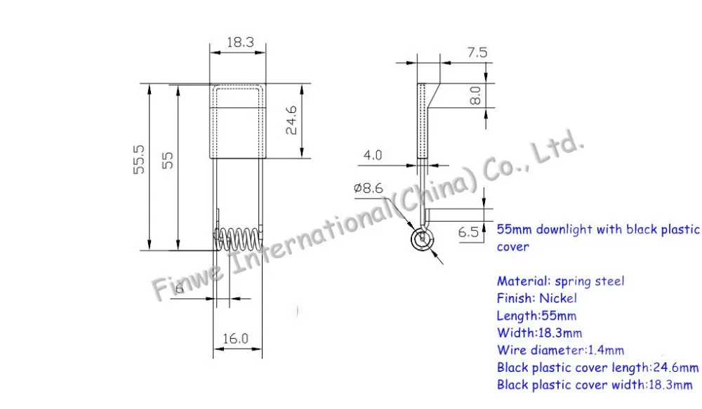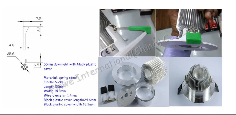 Lamp Diameter: 14-15mm diameter fluorescent lamp Thickness:0.5mm Size: 20*15*9.8mm Tolerance: ±1mm Material: Stainless steel Package:500pcs/Bag Shipping methods: DHL Shipping cost: Free Shipping time:6-7 days Usaged:T5Fluorescent Lamp holder