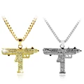 2017 Gold & Silver Chain Pistol Pendant Unisex Submachine Uzi Gun Pendant Chain Maxi Necklace Men/Women Hip Hop Jewelry GiftsUSD 3.79/piece