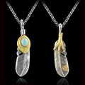 High-Grade Quality Goro \'s Indian Fashion Titanium Steel Eagle Silver Feather Charm Pendant Necklace For Men\'s Turquoise JewelryUSD 3.75/piece