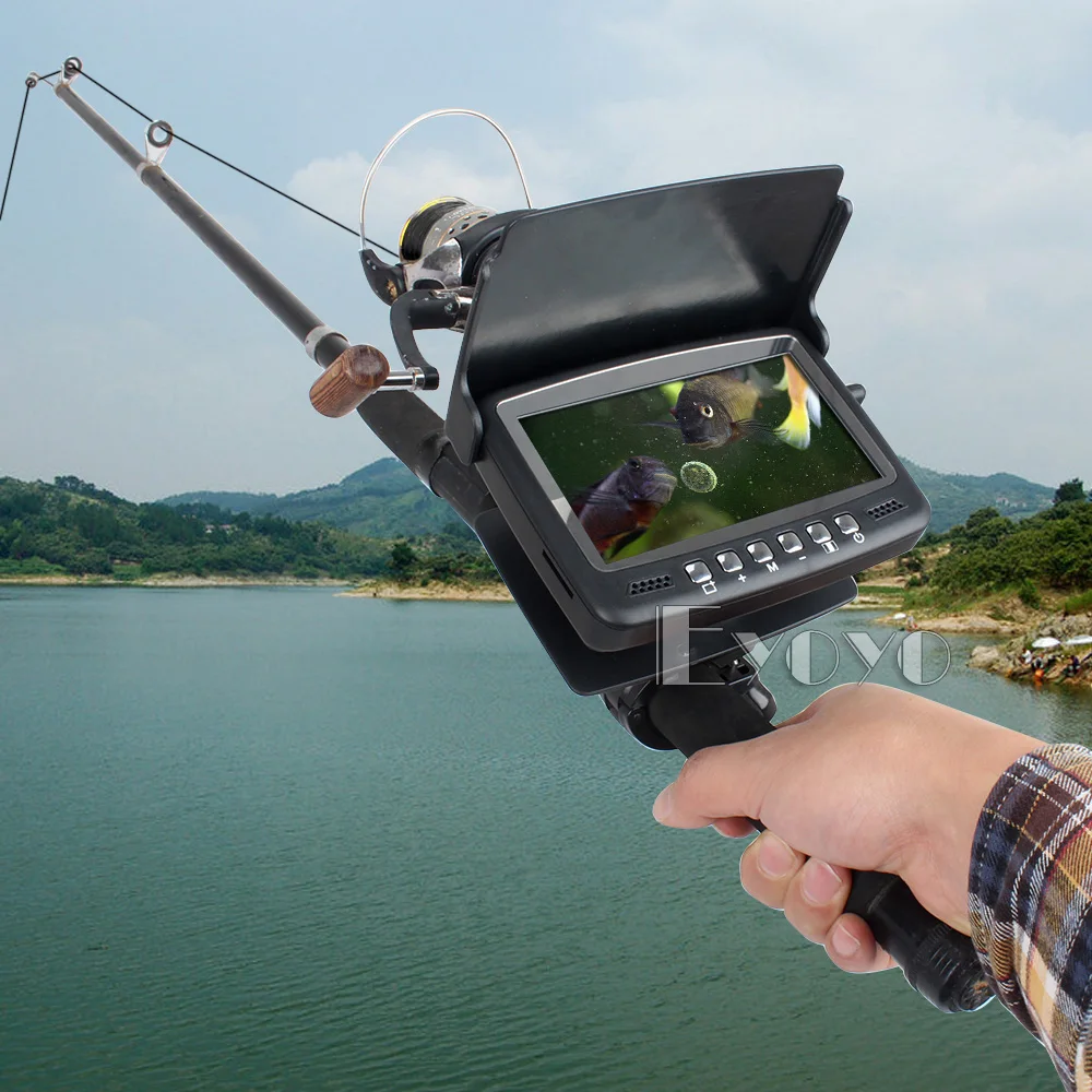 Eyoyo15m Professional Fish Finder Underwater Fishing Video Camera 4.3" Color HD Monitor Brand Eyoyo,Original,1000TVL HD CAM,8PCS InfraredLEDS. Updated Version!!!With Bracket andMetal Pole,Easy InstalledonFishing Rod.