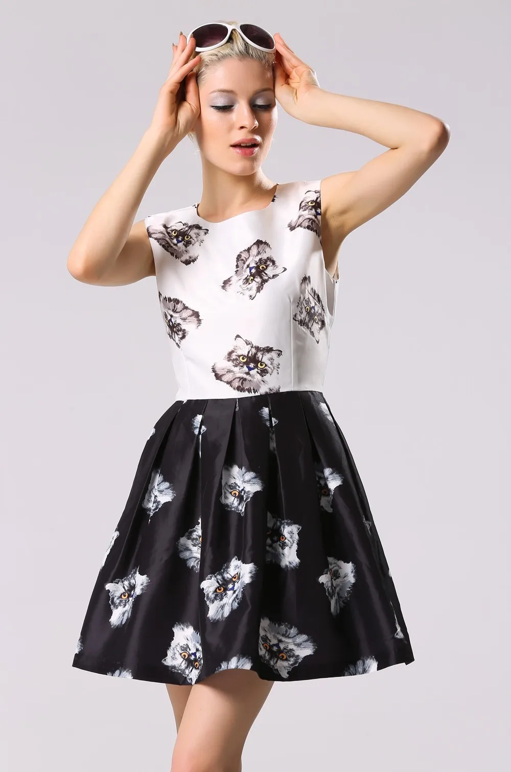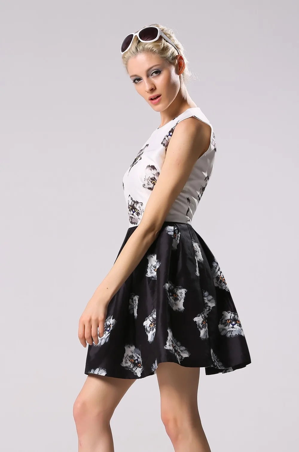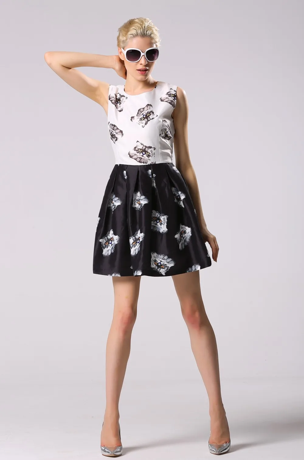 | Stylish Lady Women\'s New Fashion Print Sleeveless O-Neck A-line Mini Dress Features: 100% Brand New. Material: Polyester Color: White Collar: O-Neck Pocket: No Sleeve: Sleeveless Style: Fashion Dress Length: Above Knee Pattern: Animal Print Occasion: Casual, Party Garment Care: Hand-wash and Dry Clean Unique style, create a illusion for stunning curves / Unique style, make you more beautiful, fashion, sexy and elegant. Package Content: 1 x Women Dress Note: 1. Hint for choosing proper size, use similar clothing to compare with the size. 2. Choose larger sizes if your size are same as the flat measurement size chart 3. Please ignore the tag size comes with the cloth. The tag size sometimes can be a larger than our description size because those are for Chinese. We are 1 or 2 sizes smaller than European and American people. 4. As different computers display colors differently, the color of the actual item may vary slightly from the above images, thanks for your understanding. Our Model Information: Height 174cm, Bust 85cm, Waist 59cm, Hip 88cm Size: There are 3 sizes (S, M, L) available for the following listing. please allow 1-2cm differs due to manual measurement, thanks (All measurement in cm and please note 1cm=0.39inch)