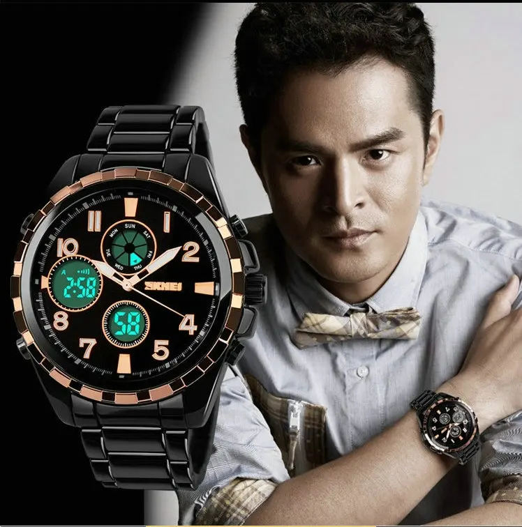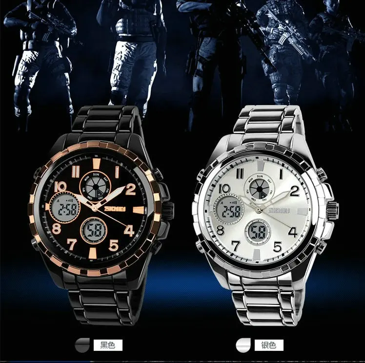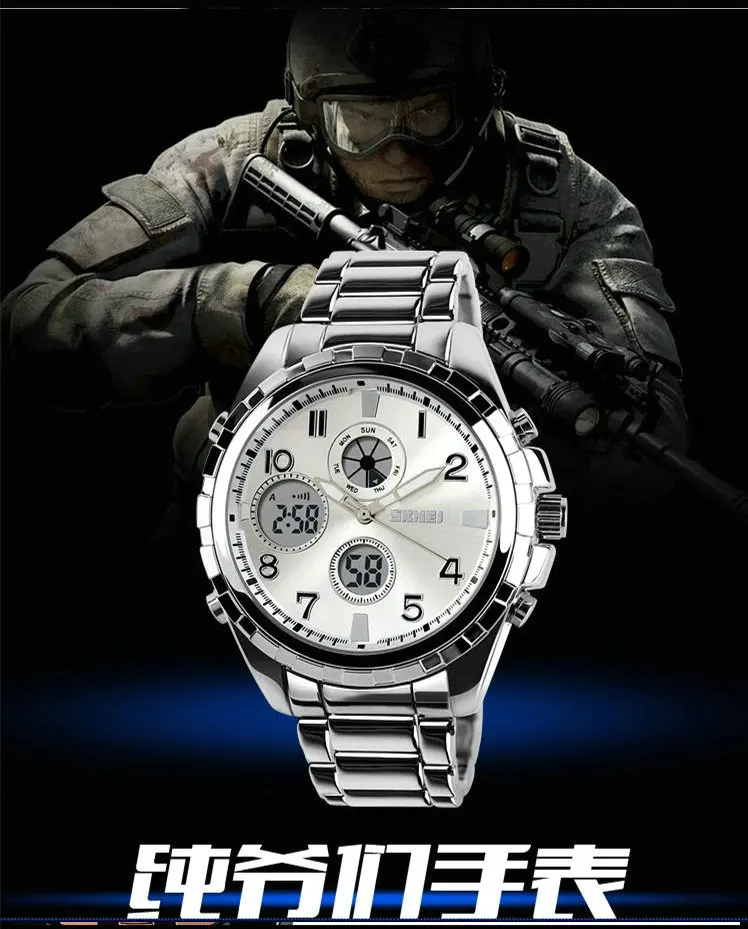 Male Sports Watch Men Full stainless steel waterproof Quartz-watch Digital Analog Dual display Men\'s LED Military Watches montreUSD 42.54/piece
