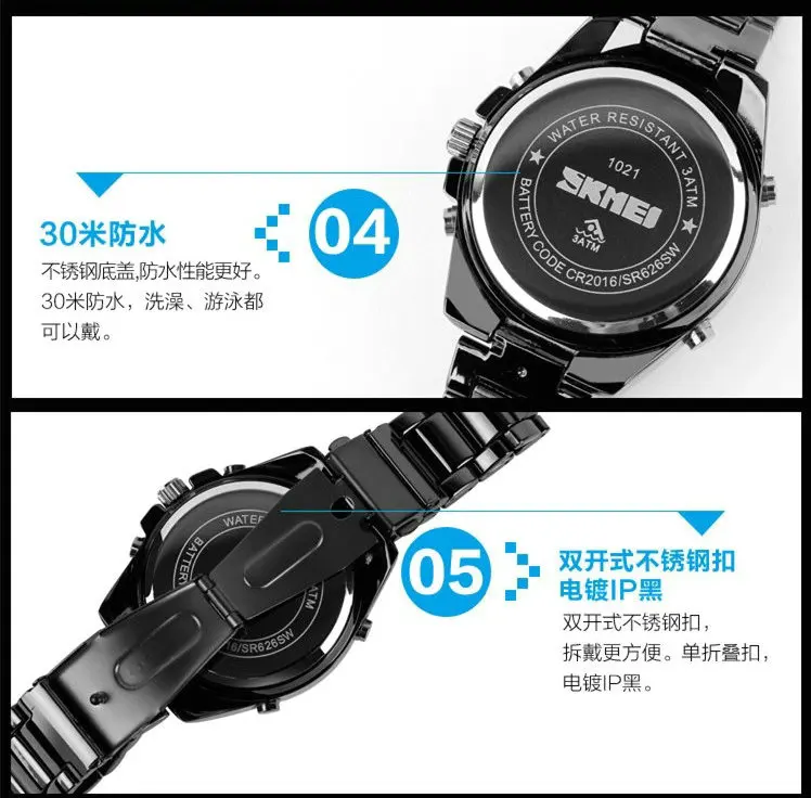 skmei water resistant quartz watch with stainless steel back wathes men women business wristwatches men\'s Sports classic FashionUSD 27.28/piece