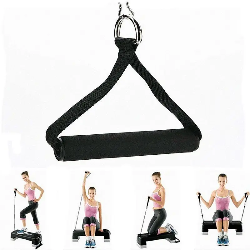 NEW 1Pc Pull Handles Resistance Bands Foam Handle Replacement Fitness Equipment Black For Yoga Exercise Workout Gym Description:The new tricep rope righteously an amalgamation of ergonomic and skill which lead you to build your Biceps/Triceps as robust as you could desire for and does not curb you to use for single exercise only but to use for all your lifting and pulling exercises. The exclusive idea to use plastic bar handle made it one of the most comfortable triceps to hold on unlike the orthodox triceps.Multi purposed round shape thick rubber grip on the handles gives it extra clasp as well as makes it wetness free when workout.Superior quality 1” wide nylon made straps make them strong enough to hold maximum weight.Standard sized immaculate quality steel made round shaped rings do not restrict you to use it on specific bars only but to use wherever you want it to.
