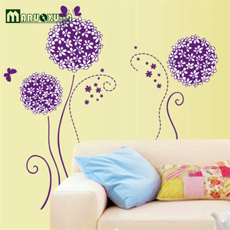 Purple Dandelion Flower Ball High Quality PVC Transparent Green Wallpaper The Third Generation Removable Wall Stickers