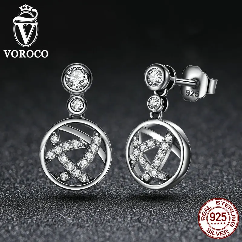 VOROCO Exclusive Design Round Shape 100% 925 Sterling Silver Openwork Femme Stud Earrings Fashion Jewelry E013