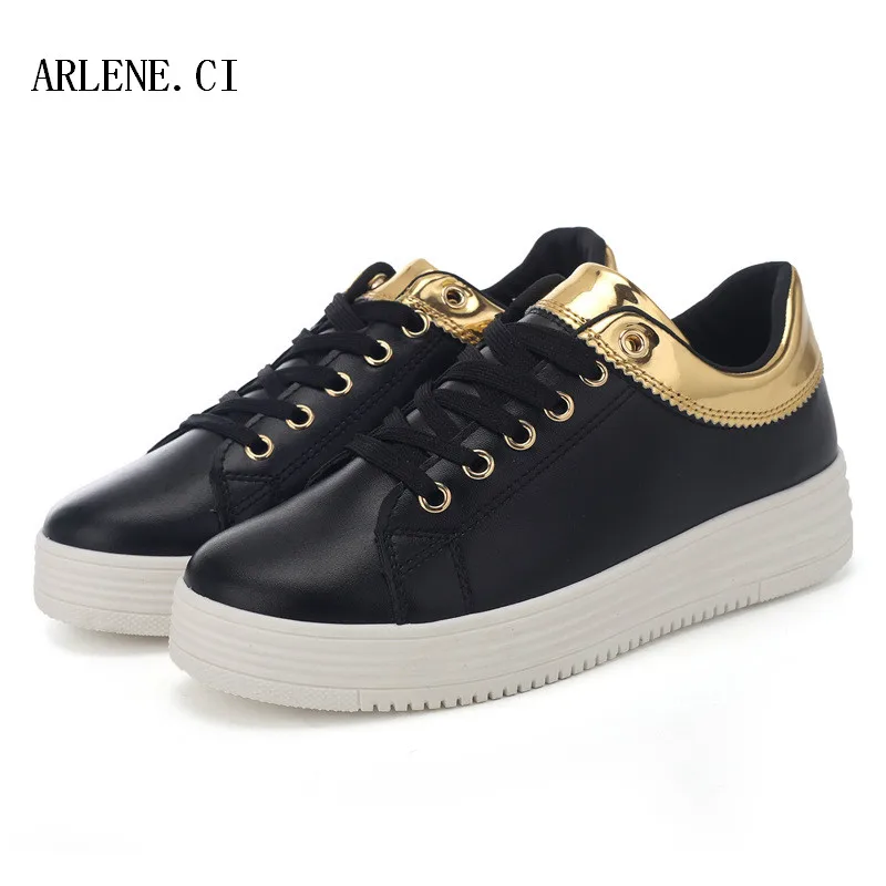 Women Shoes Sanglaide 2017 New Spring Lace up Platform Casual Shoes Womens Gold Flats Basket Femme Trainers Shoes Fashion Brand