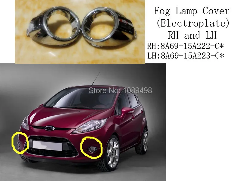 2 Pcs/Pair RH and LH Electroplate fog lamp cover for Ford Fiesta 2009-2012 OEM Part Number: RH:8A69-15A222-C* LH:8A69-15A223-C* Bfore you order, please kindly check the car model and Part Number carefully.