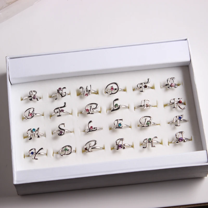2017 New Arrival Fashion Silver Plated Adjustable A B D E G M N Alphabet Ring Name Love Rings For Women