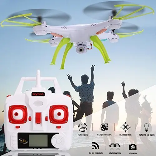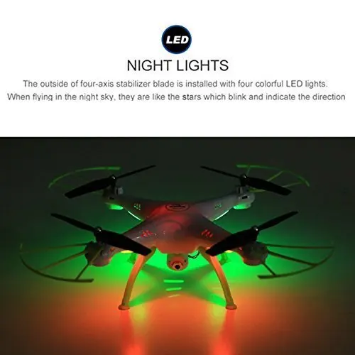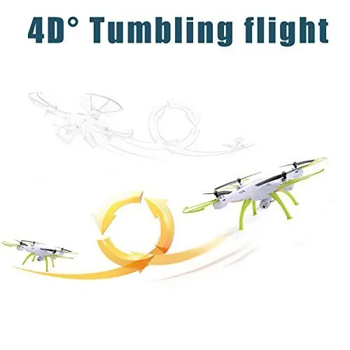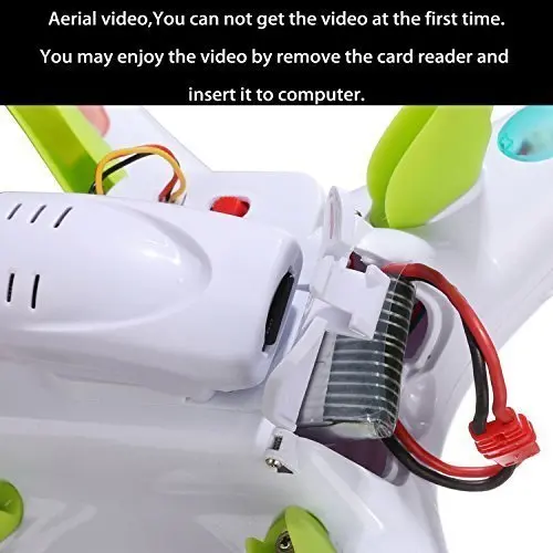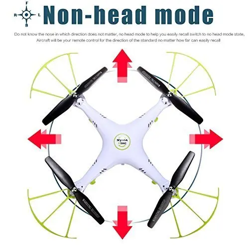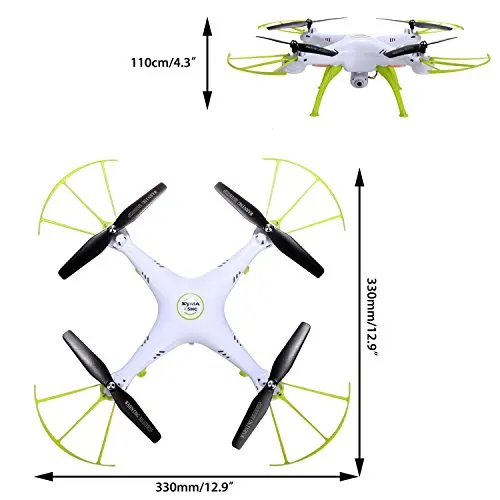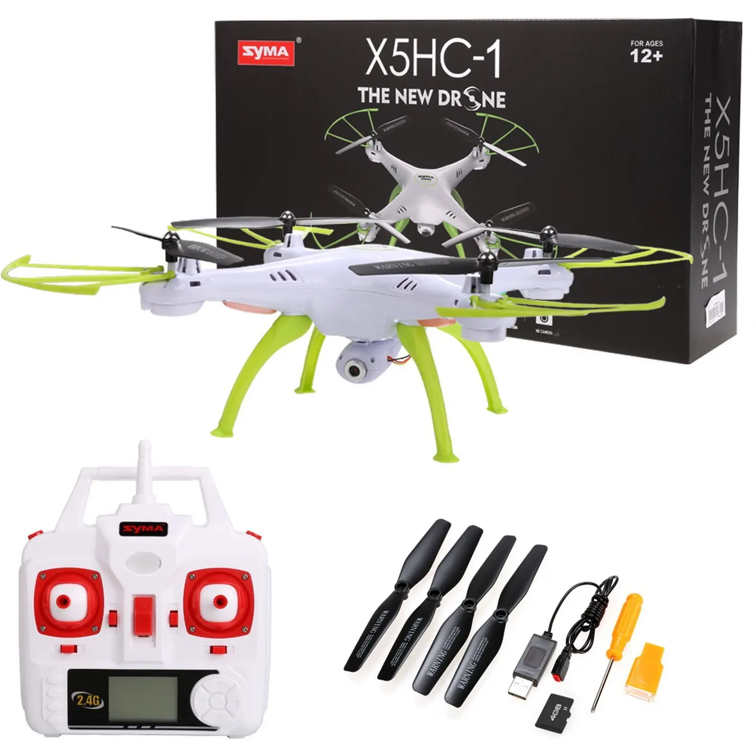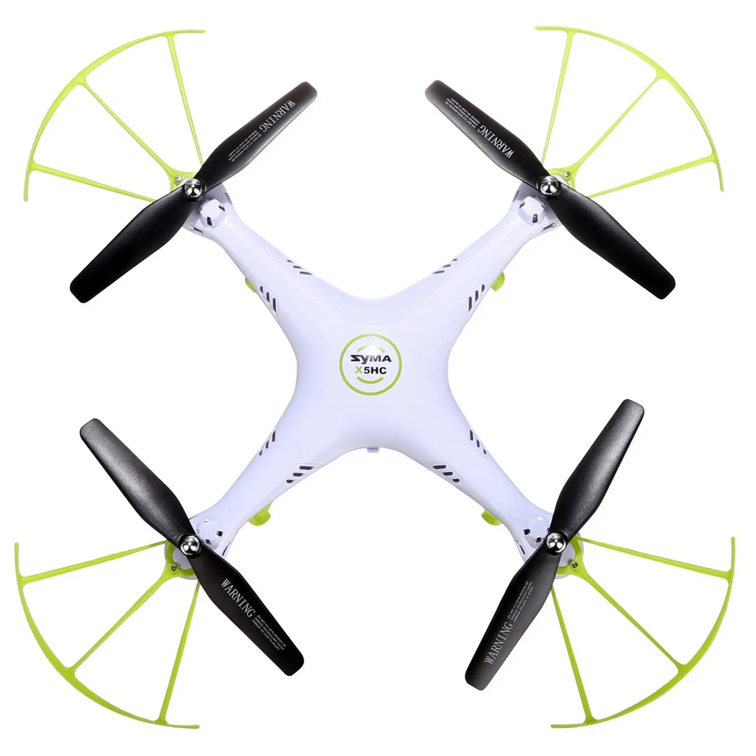 SYMA X5HC X5HC-1 2.0MP HD Camera RC Quadcopter with 360 Eversion Headless Mode High Hold Mode Function 2.4GHz 4CH 6 Axis Specifications: --Item name: X5HC --Material: ABS --Colour: blue/white optional --Remote control: 2.4GHz / 4 Channels / mode 2 --Size: 33 x 33 x 11cm/ 12.9 x 12.9 x 4.3inch (L x W x H) --Motor Model: Φ8 --Battery: 3.7V/500mAh Lithium Battery --Camera Type: X5HC-12A Camera --Remote Control Powered: 4 x AA Battery (Not Included) --Suitable Age: Above 12 Years Old --Function: 360 Degree Rotation --Gyroscope: Six axis --Motor: Coreless motor --Camera: 2.0MP HD camera --Function: 360° Eversion, CF mode, up, down, left, right, forward, backward, hovering --Remote distance: about 30-50m --Battery for quadcopter: 3.7V 500mAh li-po --Charging time: about 130 minutes --Working time: 5-7 minutes --Battery of remote controller: 4 * AA Battery (not included) Package : 1 x RC Quadcopter, 1 x Remote Control, 1 x Camera, 1 x Card Reader, 1 x USB Chrger Cable, 1 x Screwdriver, 4 x Propeller Pro FAQ of the aircraft: 1. The aircraft fail to connect with transmitter. Before binding, make sure battery is full. Then turn on the drone and the transmitter, the time between these two operation should be finished in 2 seconds. 2. One or more motors don\'t work. Drone should stay on a flat surface during the binding, or motor is damaged. 3. Battery problems (can\'t be charged, swelling, etc). Battery damaged, suggested to change a new one. 4. Accessories missing. Check gift box package inside and outside carefully. Contact custom service. 5. The aircraft is out of balance (can\'t fly, deviation, spinning on the ground). Check the propeller is installed in the right way.