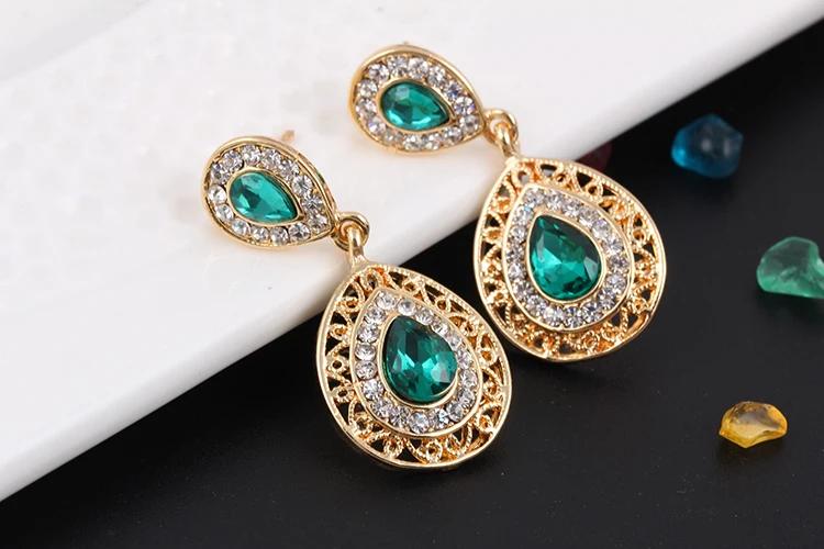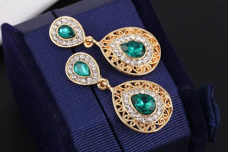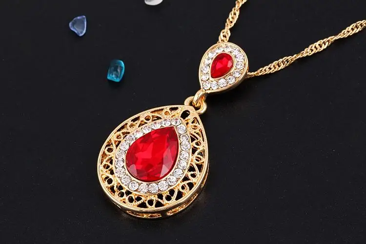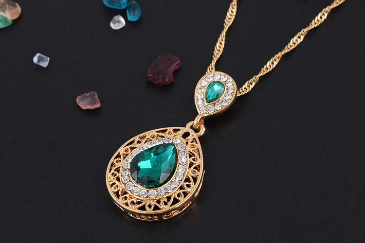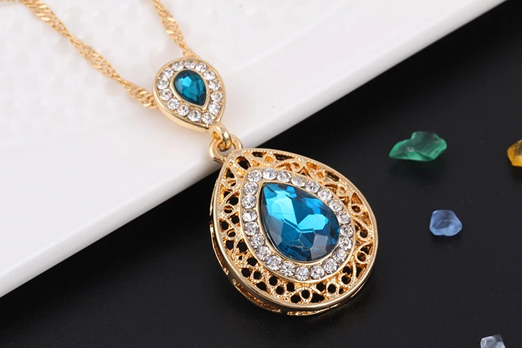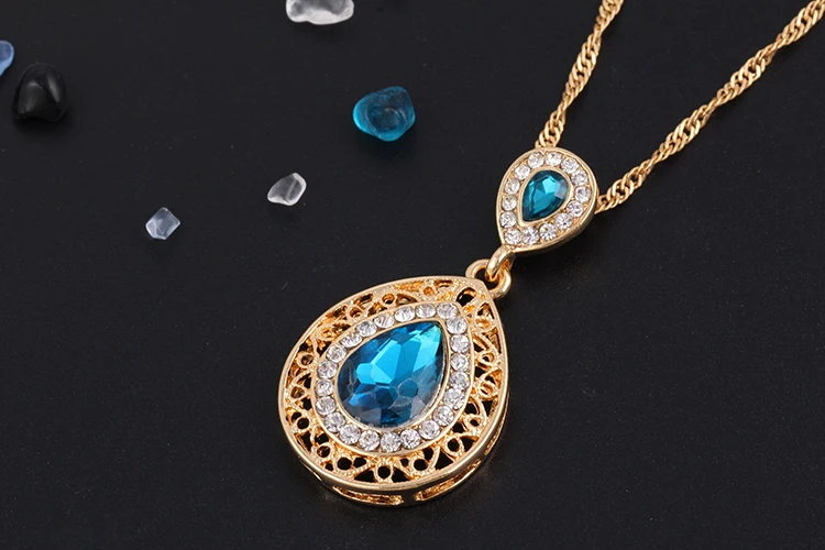 Women bridal Wedding Jewelry Sets Charm Crystal Water Drop Pendant Necklaces Earrings Sets Shininy Zircon bijoux femme 2015