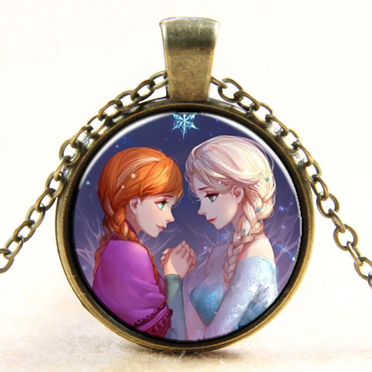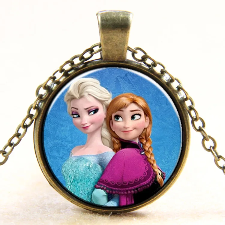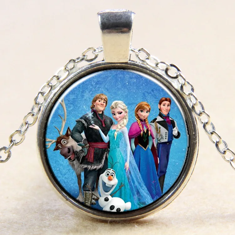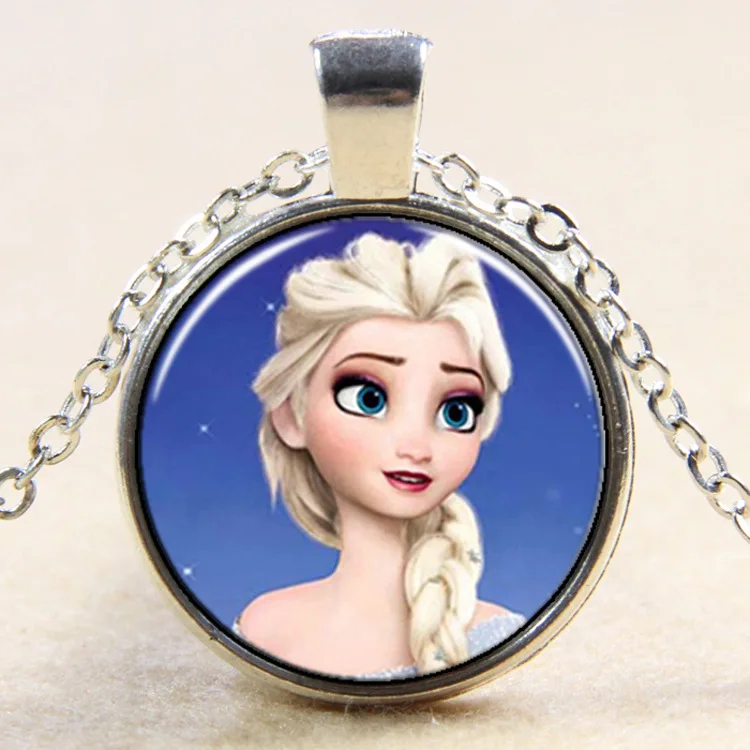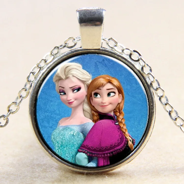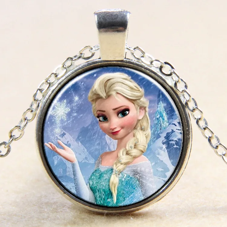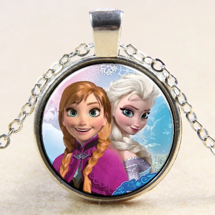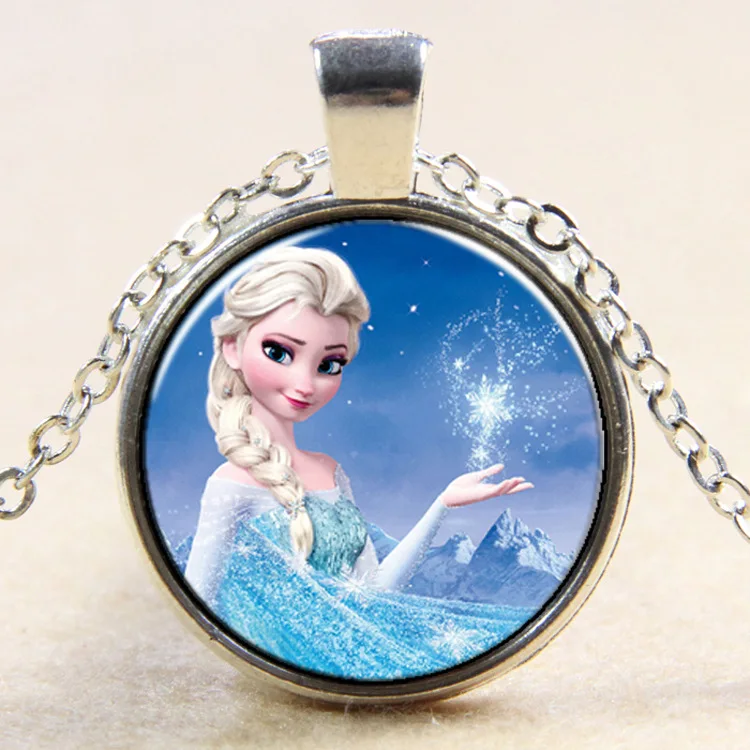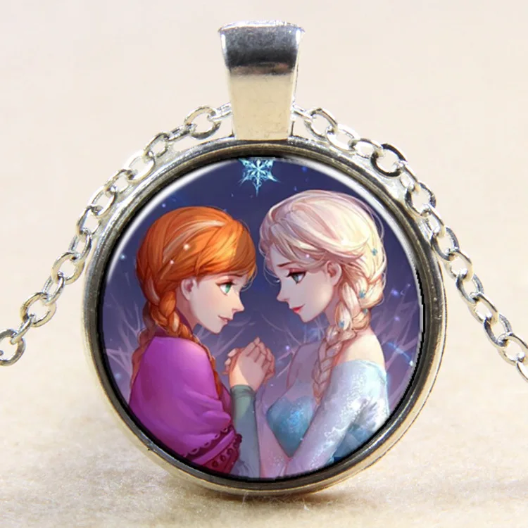 Princess ELSA Anna silver coated glass pendant necklace popular in Europe and America Y014