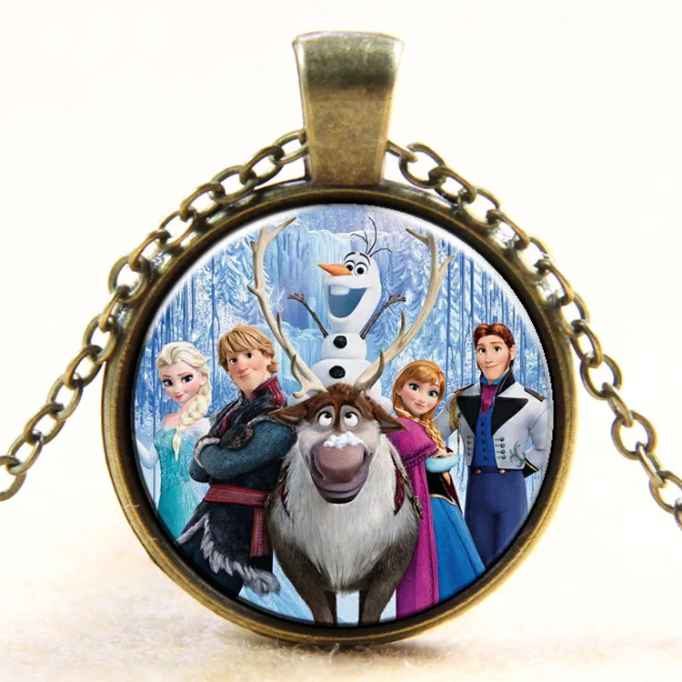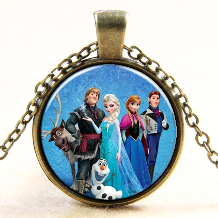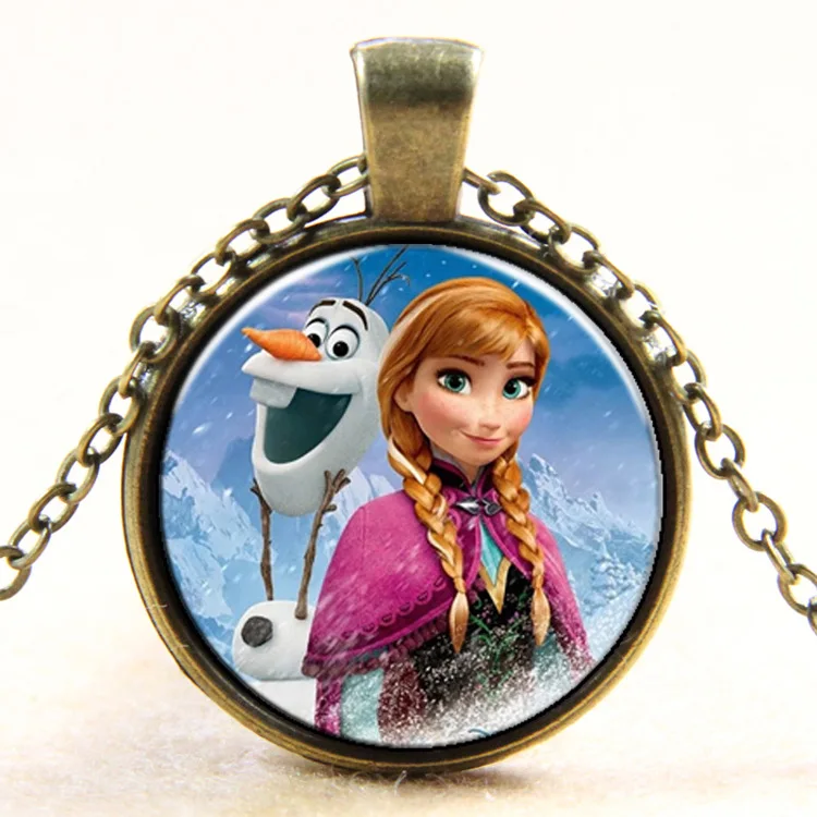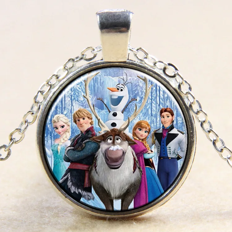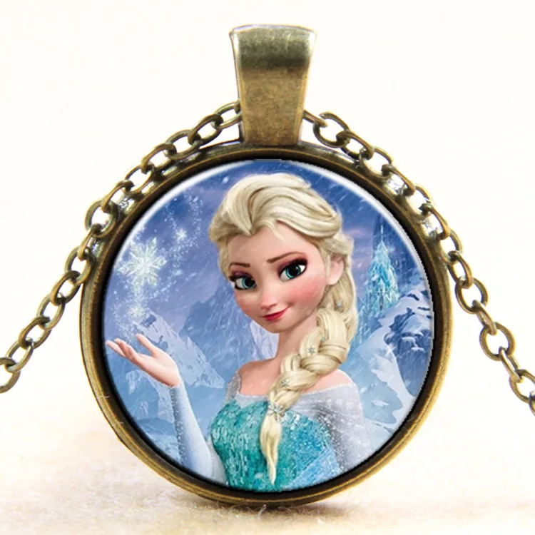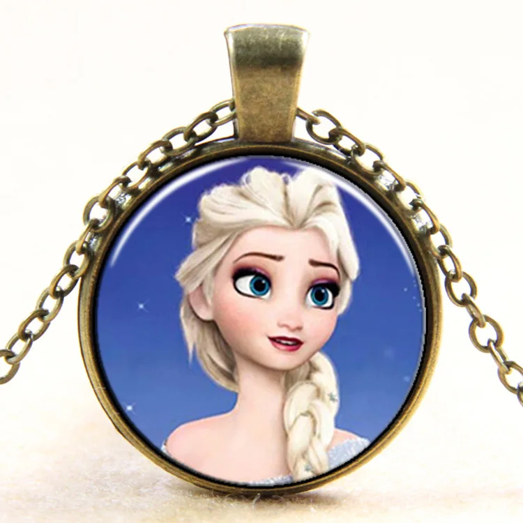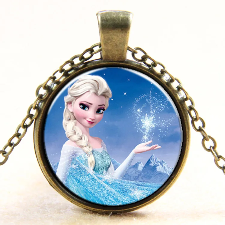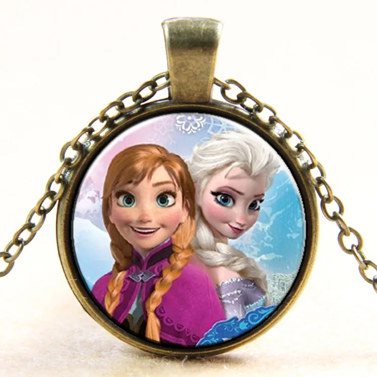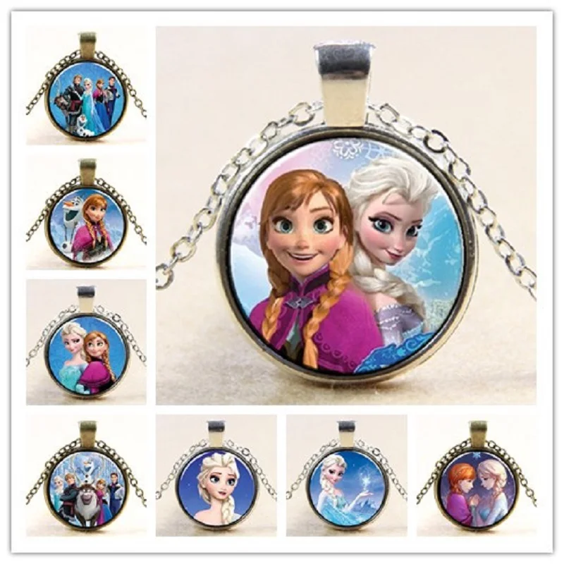 Princess ELSA Anna silver coated glass pendant necklace popular in Europe and America Y014