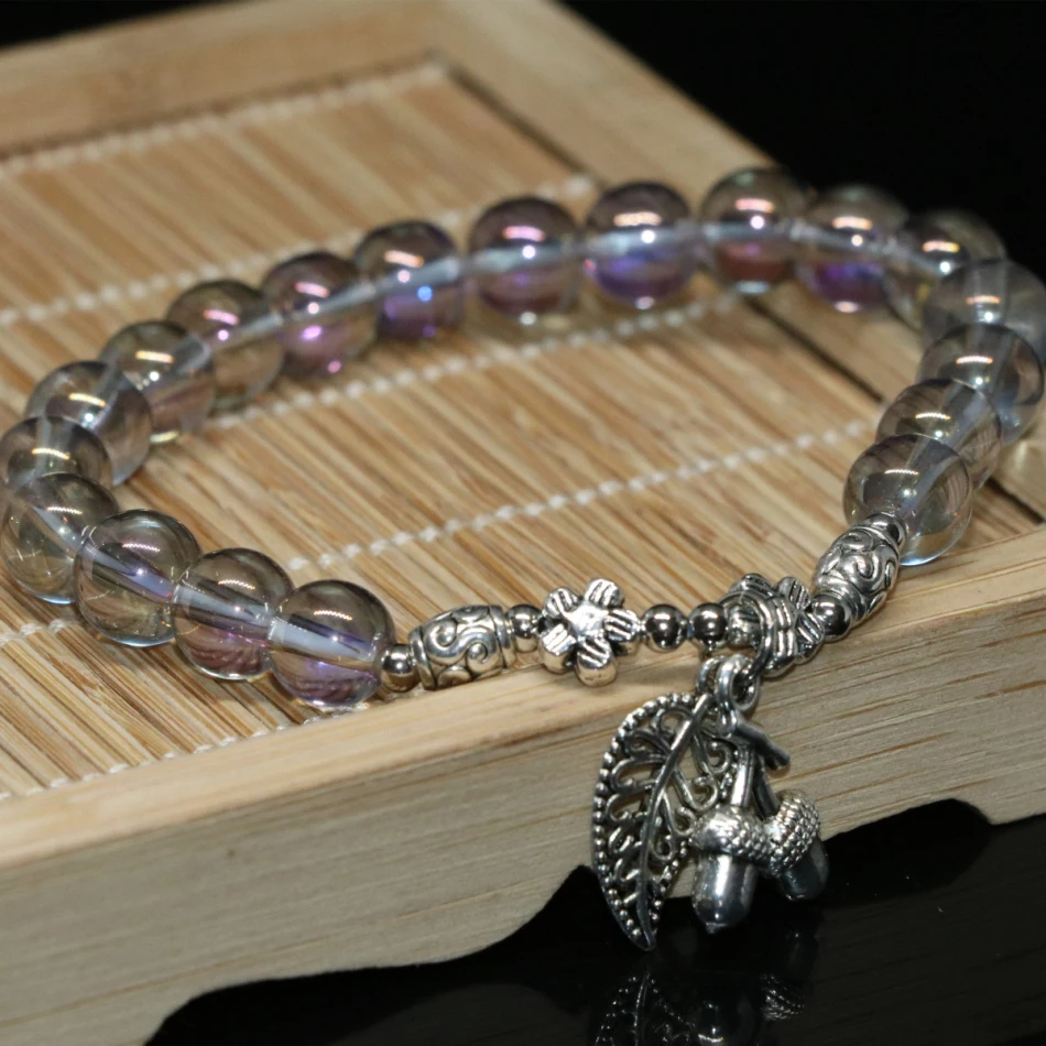 Unique design fashion electroplated purple crystal 8mm round beads bracelets women party gift exquisite jewelry 7.5inch B2160