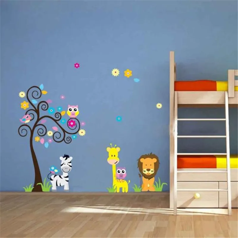 2016 Cartoon zoo wall sticker children kids room decoration Owl/Lion/giraffe animal wall sticking paper poster for baby room