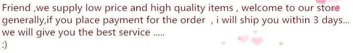 shipment: when you place an order,please choose a shipping method and pay for order including the shipping fee.We will send the item within 3 days once your payment is completed.We do not guarantee delivery time on all internation shipment due to differences in customs clearing times in individual in individual countries;which may affect how quickly you product is inspected.Please note that buyer are responsible for all additional customs fee,brokerage duties and taxes for importation into you country.These additional fees may be collected at time of delivery,We will not refund shipping charges for refused shipments. The shipping cost does not include any impor taxes;and buyers are responsible for customs duties Generally,if you choose post office mail. You may not cost the tax! returns: We do our best to serve our customoers the best the we can;We will refund you if you return the items within 15 days of your receipt of the items for any reason.However,the buyer should make sure that the items returned are in theire original conditions.If the itemsr are damaged or lost when they are returned,the buyer will be responsible for such damage or loss,and we will not give the buyer a full refund.The buyer should try to file a claim with the logistic company to recover the cost of damage or loss.The buyer will be responsible for the shipping fees to return the items Feedback Your satisfaction and positive feedback is very important to us.Please leave positive feedback and 5 stars if you are satisfied with our items or service.If you have any problems with our items or service;please feel free to contact us first before you leave negative feedback.We will do our best to solve any problem and provide you with the best customer services.