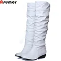 Asumer Plus size 2017 new arrive Mid-Calf Women Boots Black White Brown flat heels half boots spring autumn shoesUSD 36.86-38.66/pair