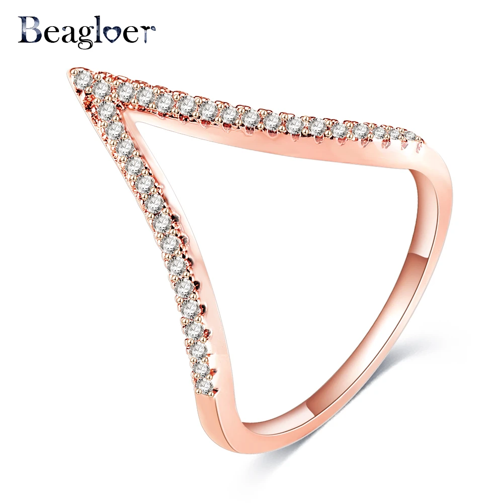 Beagloer Brand Latest Trendy V Shape Design Ring for Women Rose Gold Plated Cubic Zirconia Rings Popular Jewelry CRI1039