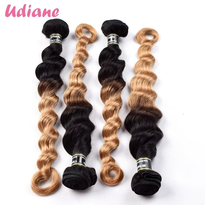Two Tone Brazilian Ombre Hair Extensions 3 Color Available 4 pieces Lot Double Weft Loose Wave Human Hair Weaving 4LD02
