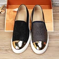 2017 Genuine Leather Men Shoes High Quality Soft Leather Serpentine Men Loafers Mocasines Hombre Brand Men Flats Gold BlackUSD 52.00/pair