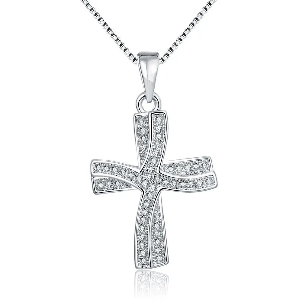 Classic Platinum Plated Cubic Zirconia Cross Pendant Necklaces Trendy Piercing Women Jewelry Cincin Hadiah Wanita Cantik Bijou