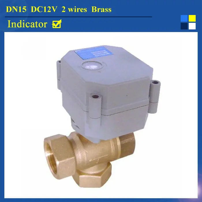 Notice: This valve is reduced port. Please check the detailed dimension carefully before buying. Or any dispute regarding “reduce port” is not accepted! 3 way Automated Ball Valve T type BSP/NPT 1/2\'\' DC12V 2 Wires DN15 Brass Valve with position indicator