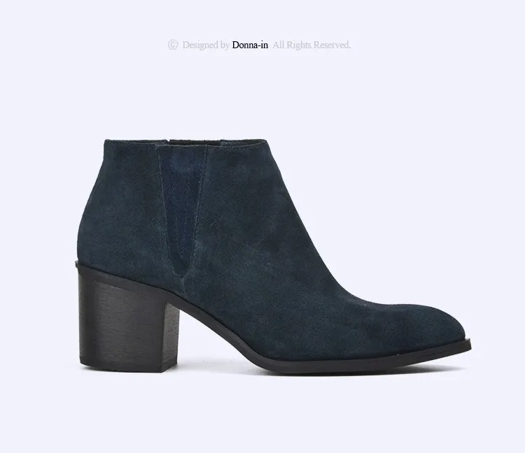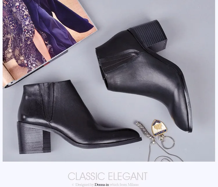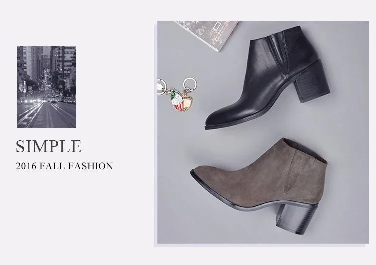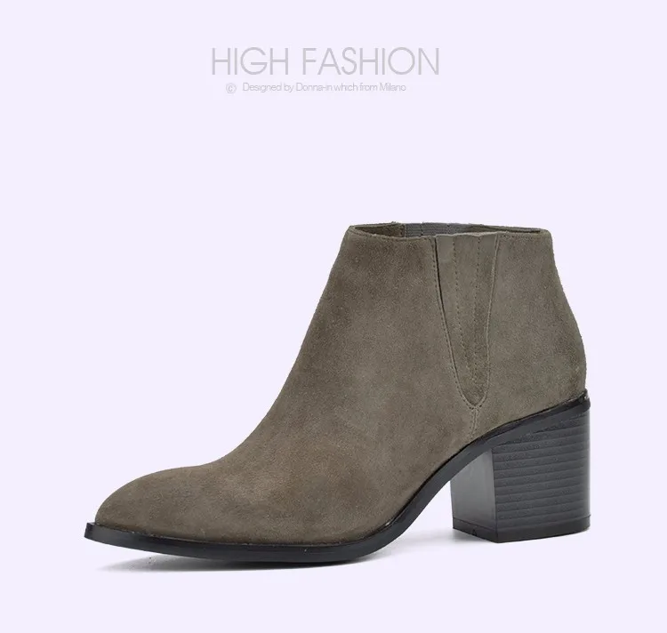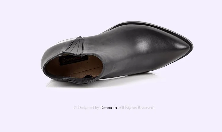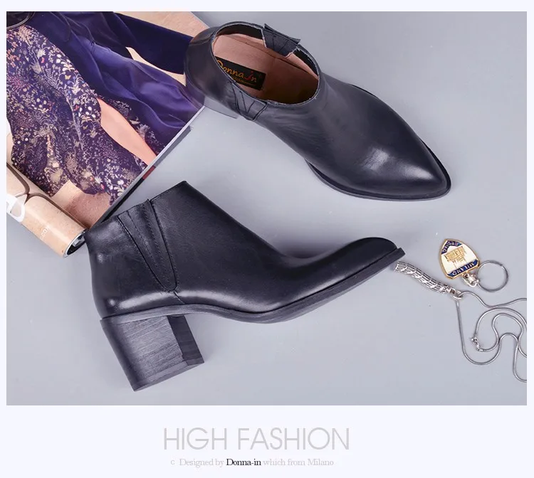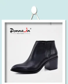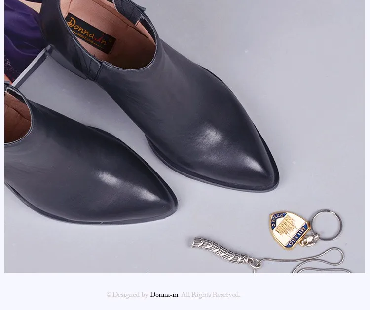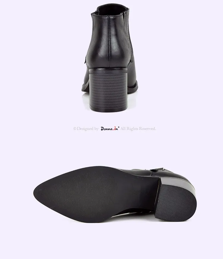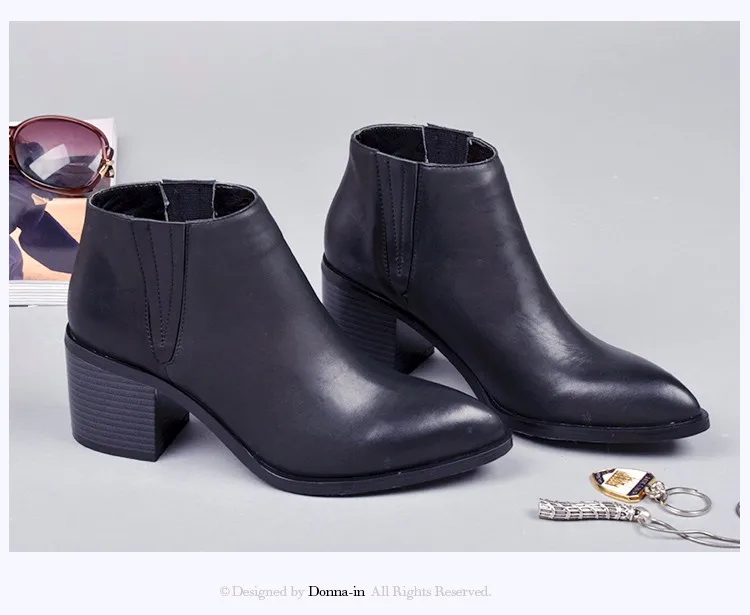 Donna-in 2016 spring single boots pointed toe thick heel ankle boots ladies short boots women's leather boots