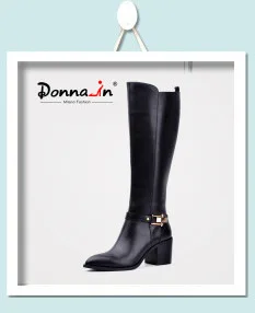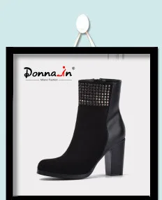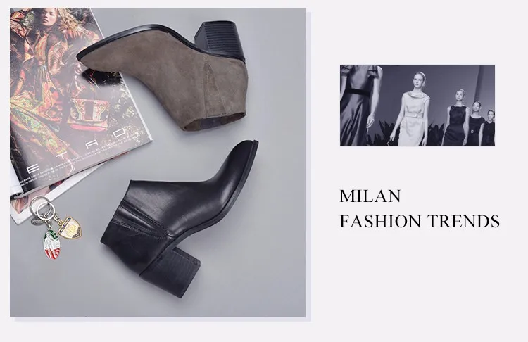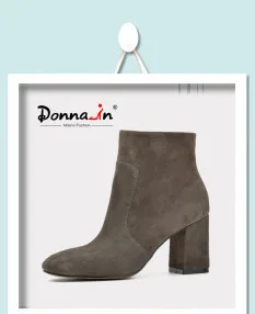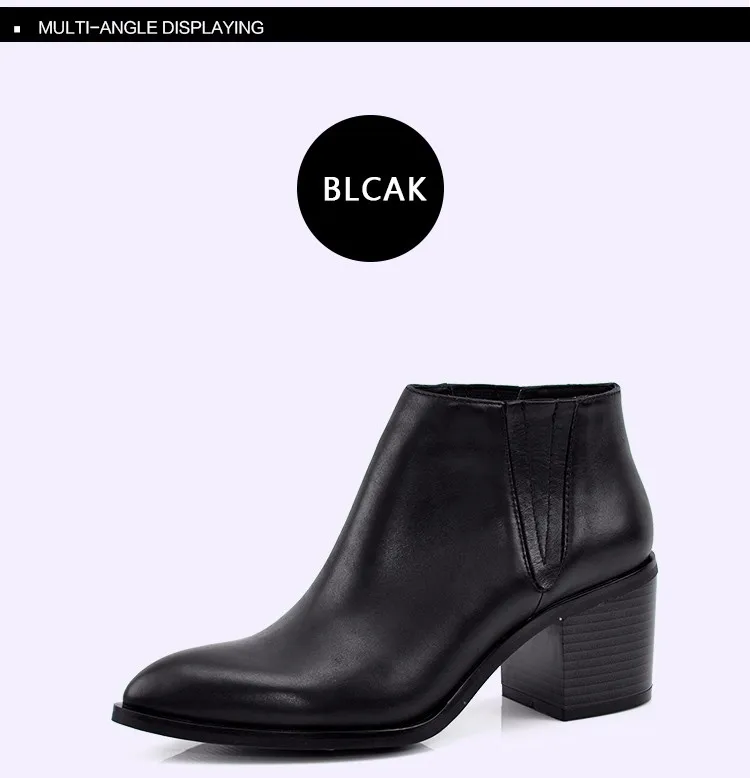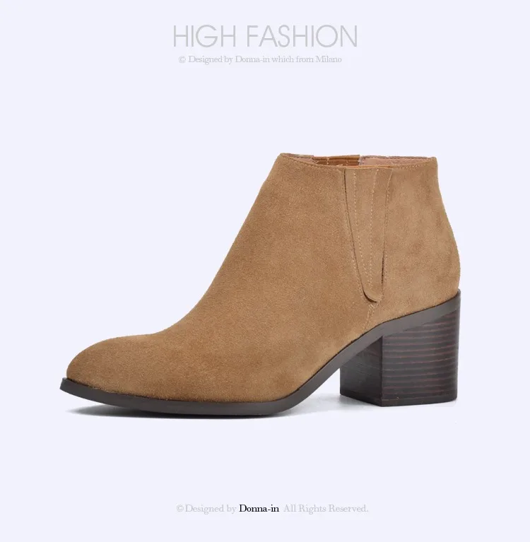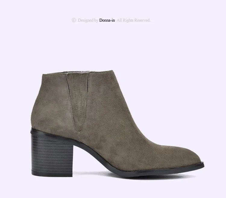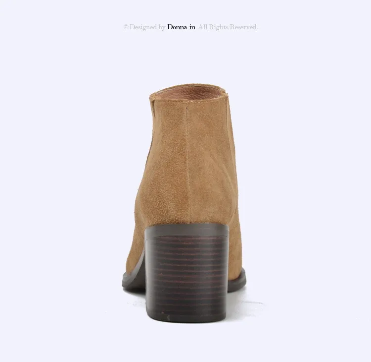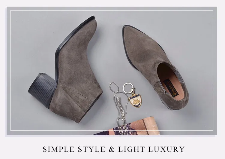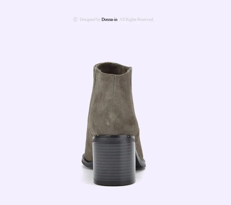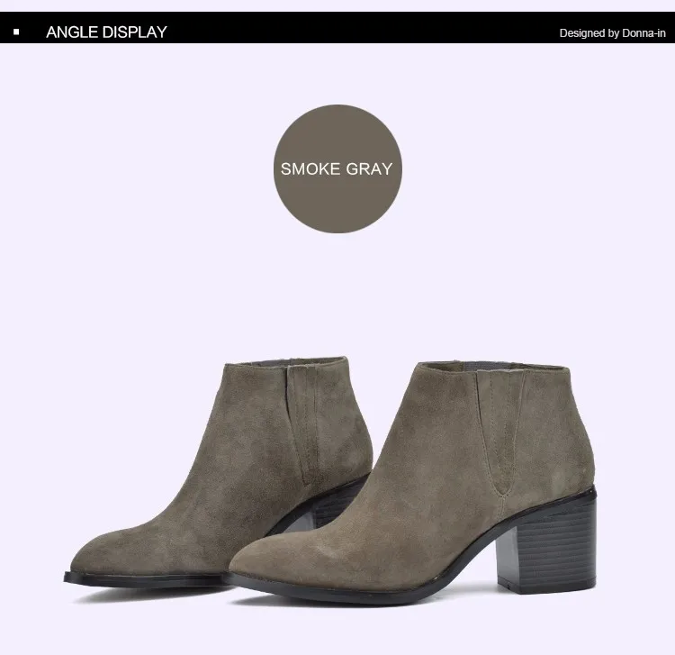 Donna-in 2016 spring single boots pointed toe thick heel ankle boots ladies short boots women's leather boots