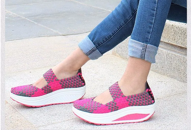 Women\'s Shoes 2016 Summer Slip on Platform Wedge Canvas Shoes Women Casual Shoe Stripe Wedges Swing Shoes for WomenUSD 26.47/pair