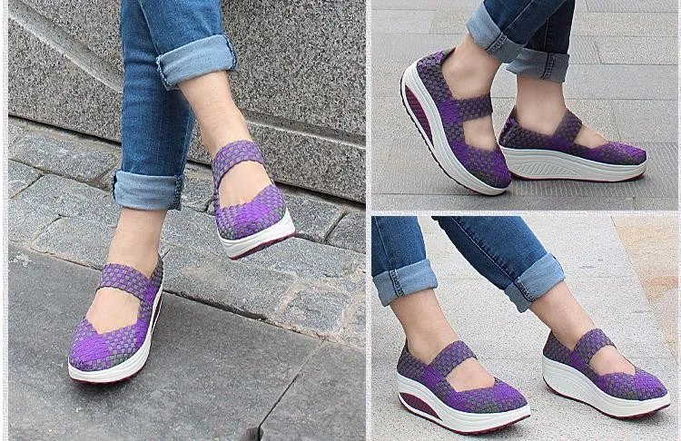 Color Block Women\'s Shoes Spring Summer 2016 Wedges Canvas Shoes Women Casual Platform Swing Shoe Zapatos MujerUSD 29.10/pair