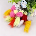 5pcs/set 2017 Rabbit Fur Keychain PomPom Cell Phone Car Bag Keychain girl Bird Tag hanging Pendant Strap Charm Tassel Key RingUSD 3.17/lot