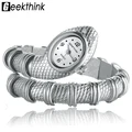 GEEKTHINK Unique Fashion Quartz Watch women Ladies Snake Shaped Bracelet Watch Bangle Diamond Ornaments Luxury Silver GoldUSD 13.44/piece