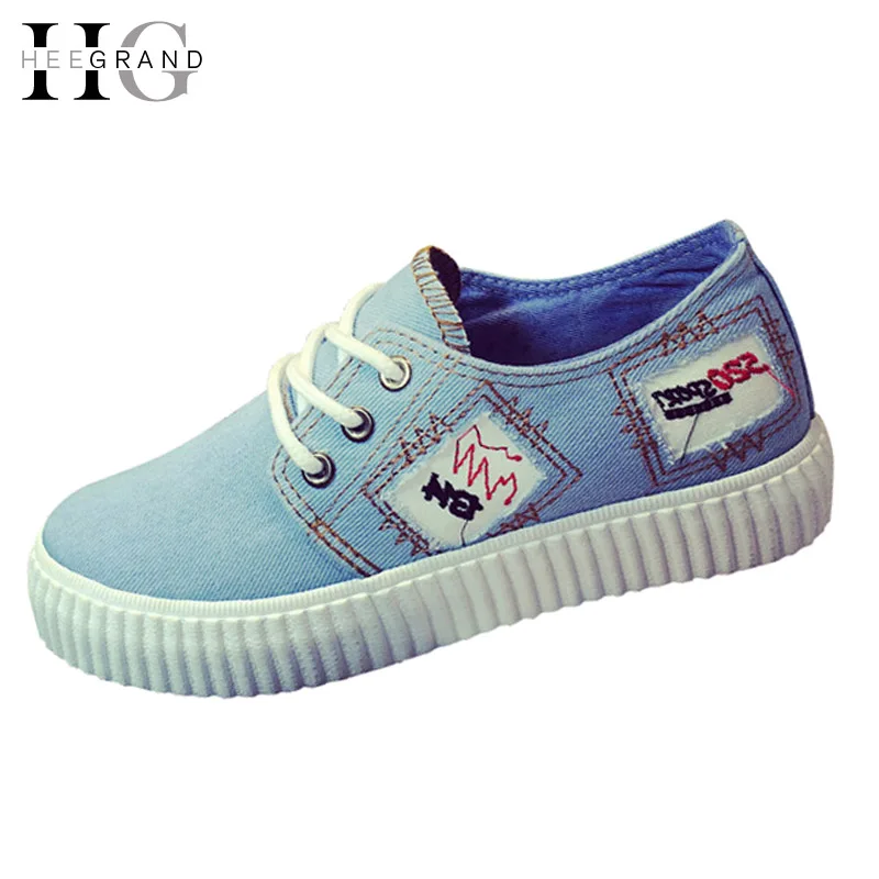 HEE GRAND Platform Canvas Shoes Woman Denim Loafers Lace-Up Creepers 2016 Breathable Flats Hollow Casual Women Shoes XWD4047USD 33.98/pair