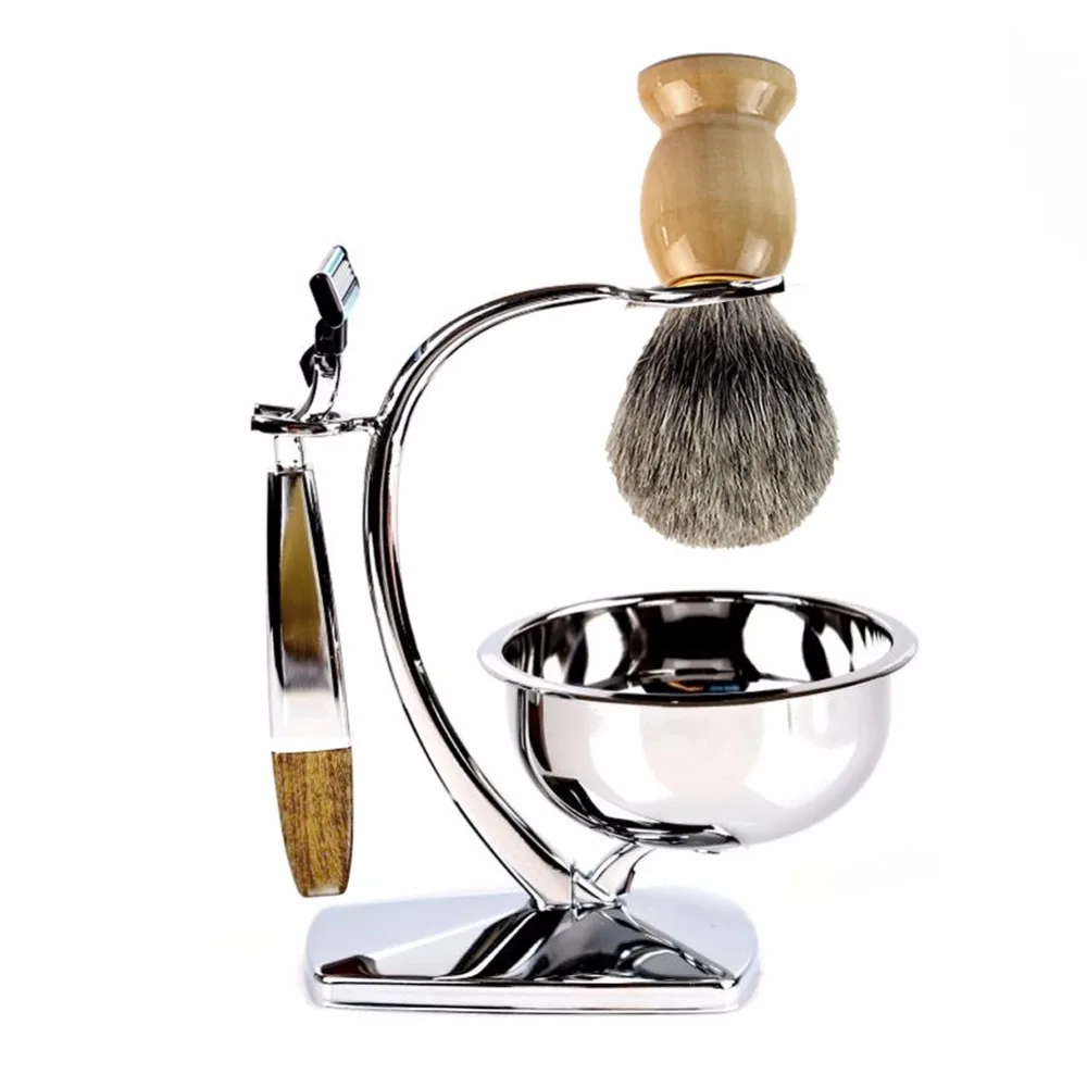 This shaving brush is made from best badger hair which is set in a WOODEN handle with a waist design, producing the richest lather possible to give you years of use The densely filled brush head is ideal for holding and distributing lather and will help soften and raise beards while gently exfoliating skin in preparation for a close, comfortable shave Specification: Material: Best Badger Hair Brush Wood handle Overall Height: 102mm / 4.01" Dia.:55 x 34 mm / 2.16 x 1.33" Widest Handle Diameter: 35mm /1.38" Color: As the picture shown,sent at random Weight: Approx 46 g Quantity : 1 PC Note: 1.Goods are sent at random, can not selectable color. Maybe will send the same color, hope you can understand.2. The product is only a brush, other accessories are not included.
