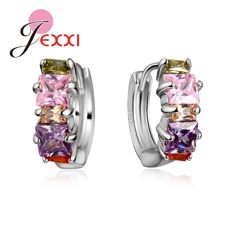 JEXXI Top Quality Shiny Women/Girls Fashion Earrings With Full White Cubic Zirconia 925 Sterling Silver Party Jewelry