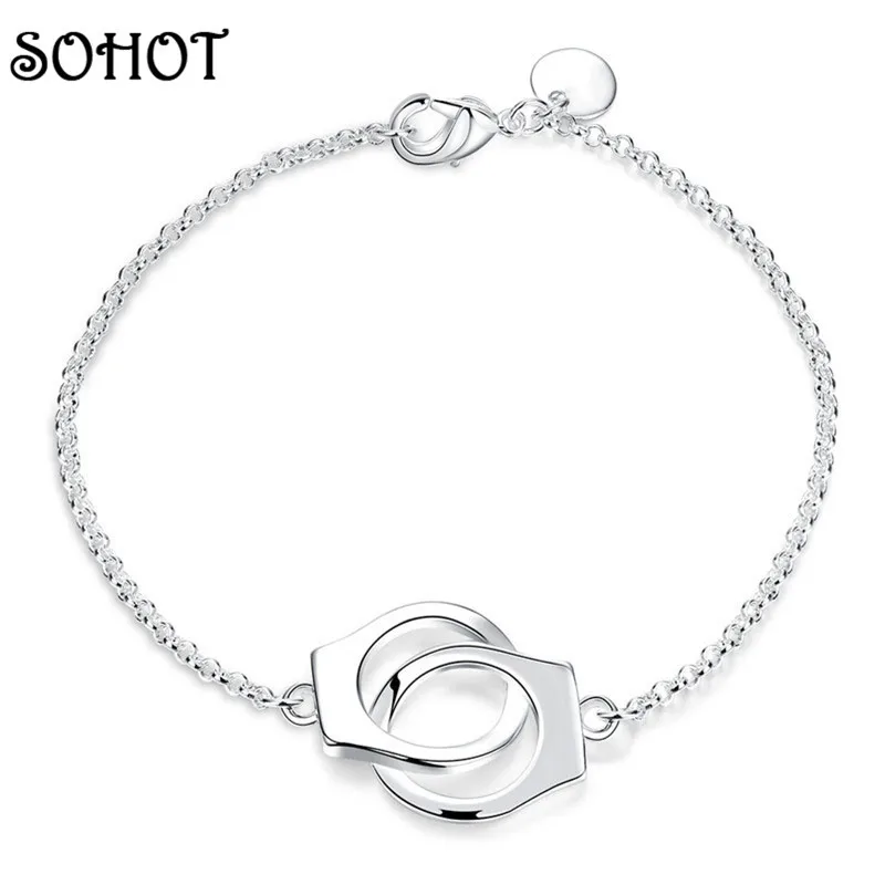 SOHOT Handcuffs Bracelet Metal Chain Silver Plated Party Accessories Jewelry for Women Girl
