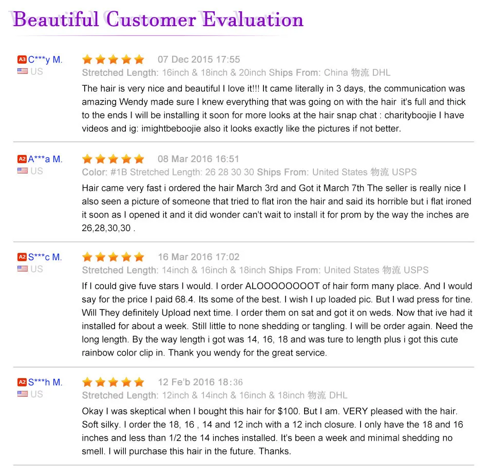 Thank you for your purchase! If you are satisfied with the hair and our service, please leave us positive feedback with FIVE STARS on all of the Detail Seller Rating. Thank You!