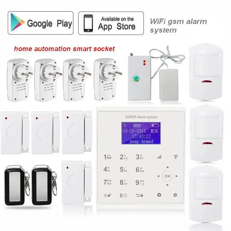 433mhz Wireless wifi gsm alarm systems home security with smart socket home automation system water leak sensor Android/IOS App APP keyword to search APP: Google play:WIFI-GSM IP alarm system APP store:IP alarm system The WIF IP camera supports APPYoosee . The alarm panel supports:English/Spanish/Danish/Polish The APP support:Chinese/English/Polish Main Function Adopt low power consumption of WIFI/GSM module, which is perfectly compatible with Cloud server and push server of system Internet plus IP alarm system with word menu on the LCD display Be compatible to WIFI/GPRS/GSM/SMS network. U8 will be priority to work under WIFI network, switch to GPRS/GSM then if WIFI is failure 39 wireless/wire zones for various of accessories, for example, wireless door sensor, wireless keypad, wireless strobe siren, wireless socket, wireless relay etc Android IOS APP application easily control Notification push to application of smart phone within 1 second for burglarproof alarm, anti tamper alarm, low voltage alarm etc Alarm IP camera integrated in one app. User can check remotely what happened real time via IP camera after get the alarm push/call/SMS quickly by click MONITOR button on the app Supports Latin ABC input on the keypad for zone name Program zone attribution remotely on app directly,for example, siren on/off, zone name, bypass or not, delay setting etc anytime anywhere(only for admin ID) Supports 1 group of admin ID and 10 groups of User ID with different authority Advanced one-key Smartlink for WIFI network