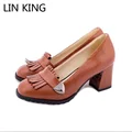 LIN KING Women Pumps Solid Leather Slip On Tassels Lady Single Shoes Fashion Square High Heel Low Top Business Dress ShoesUSD 36.90-40.42/piece