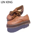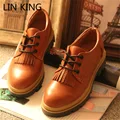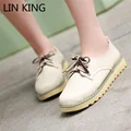 LIN KING Fashion British Style Women\'s Shoes Leisure Low Top Lace Up Flats Shoes Academic Students PU Leather Single ShoesUSD 31.12-35.00/pair